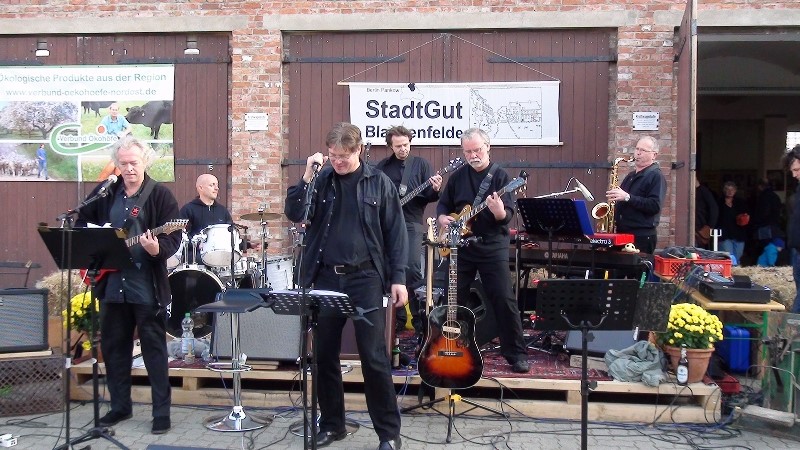Wir hatten viel Spaß bei diesem „Benefiz-Konzert" auf dem Stadtgut Berlin - Blankenfelde. Die Verantwortlichen hatten sich viel Mühe bei den Vorbereitungen zu diesem Event gegeben. Schließlich wurde ja nicht nur das Erntedankfest am 03.10.2010 gefeiert, sondern auch des zwanzigsten Jahrestages der deutschen Einheit gedacht. Zwischen Heuballen und Ständen mit Naturprodukten boten wir unsere handgemachte Musik an und freuten uns über das tolle Feedback des zahlreich erschienenden Publikums. Alle hatten ihren Spaß bei diesem Event, bei blauem Himmel und einer herbstlichen Umgebung. |