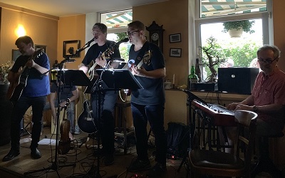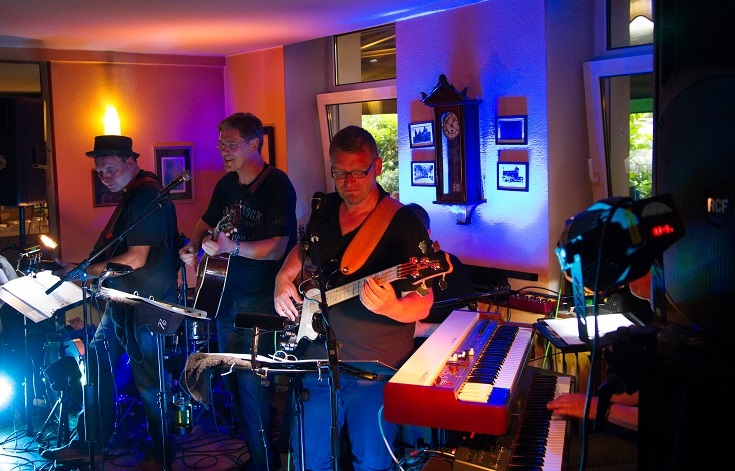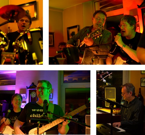 Leider war es im ersten Halbjahr 2021 Corona-bedingt für uns nicht möglich, miteinander zu proben, geschweige denn aufzutreten. So trafen wir uns 1x pro Woche per Zoom-Video und versuchten uns weiterhin an Aufnahmen aus der Ferne: also jeder nimmt für sich auf, und per Mixer wird ein Lied draus. Das ist besser als gar nichts. Aber richtiges Musizieren ist das nicht. Seit August treffen wir uns wieder und sind fest entschlossen, in Kürze aufzutreten.