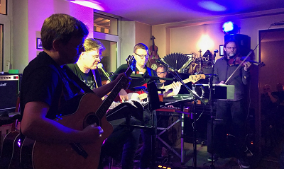 Kurz vor Jahresende ergab sich die Möglichkeit, mit einem erfahrenen Musiker und Tontechniker Aufnahmen im Probenraum bzw. Homestudio durchzuführen. Julius Krebs stand uns mit seinen Erfahrungen bei Mikrophonierung, Aufnahme und Mix sowie hilfreichen Tipps zu Arrangement und Instrumentierung zur Seite. Er steuerte noch ein paar besonders gute Mikrophone bei und gab uns (insbesondere Veit, Peter und Holger) einen Einführungskurs in der Benutzung der neu erworbenen "Digital Studio Workstation Roland VS-2480". Vielen Dank dafür. Wir werden 2017 die Aufnahme fertigmischen und auf eine CD bringen. Die ersten Hörproben gibt es hier auf unserer Website in Kürze.